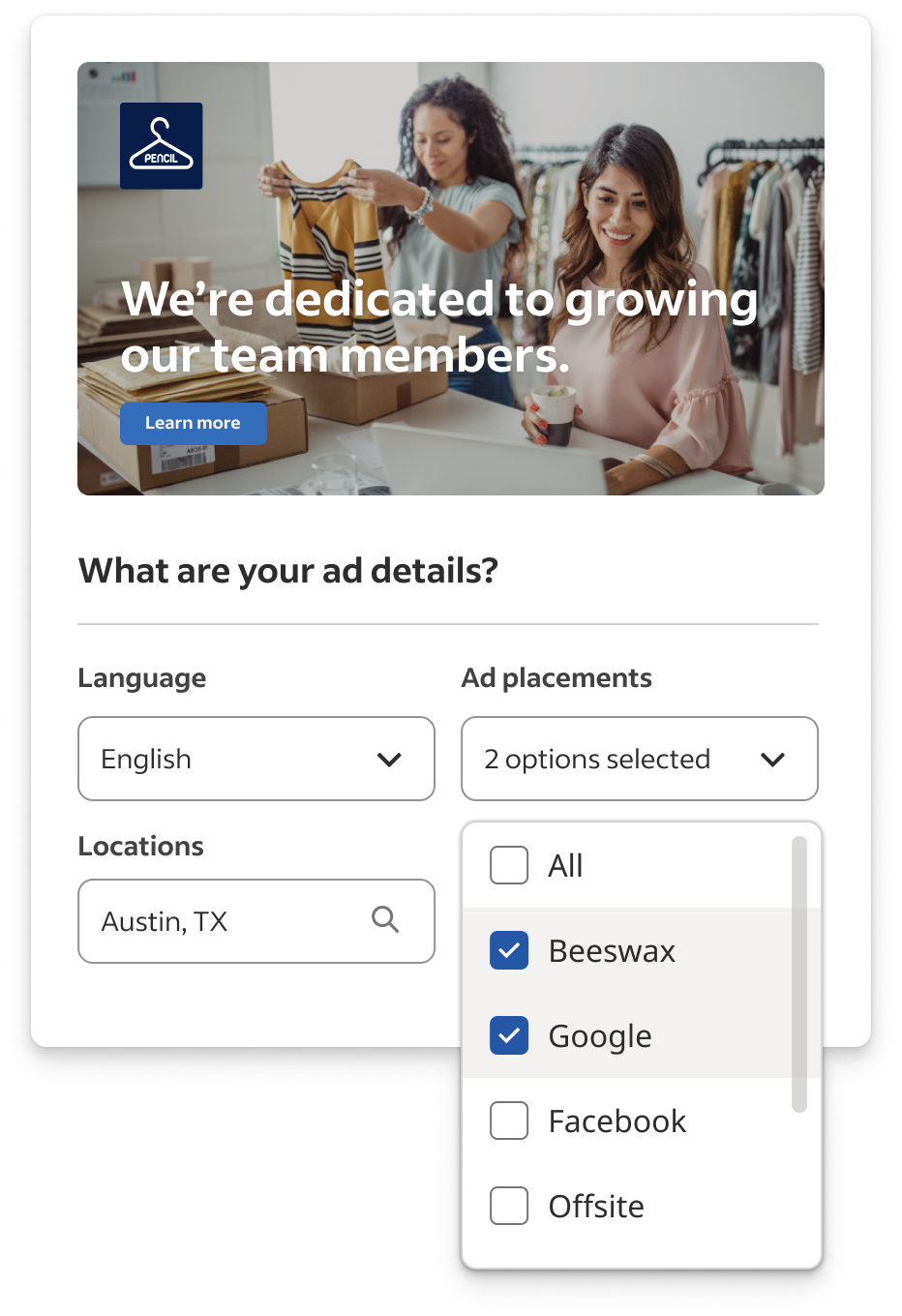 Run paid display ads across Indeed, Glassdoor, and hundreds of other relevant sites, all at once.